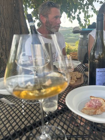 His second vineyard is in San Pietro di Govone, in the Monteforche area, where he grows Arneis and Barbera. These are older vineyards as well, leased in 2020 when he decided to focus entirely on Le More Bianche. The Barbera vines are about 60 years old, and the Arneis around 40.